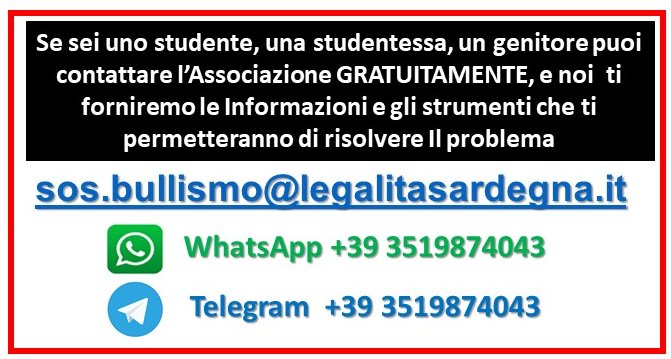 Si tratta di un percorso di Peer Education ideato dall’Associazione "Legalità Sardegna" che si pone come obiettivo primario di dotare gli studenti di un bagaglio pratico-legale per affrontare la prevaricazione.